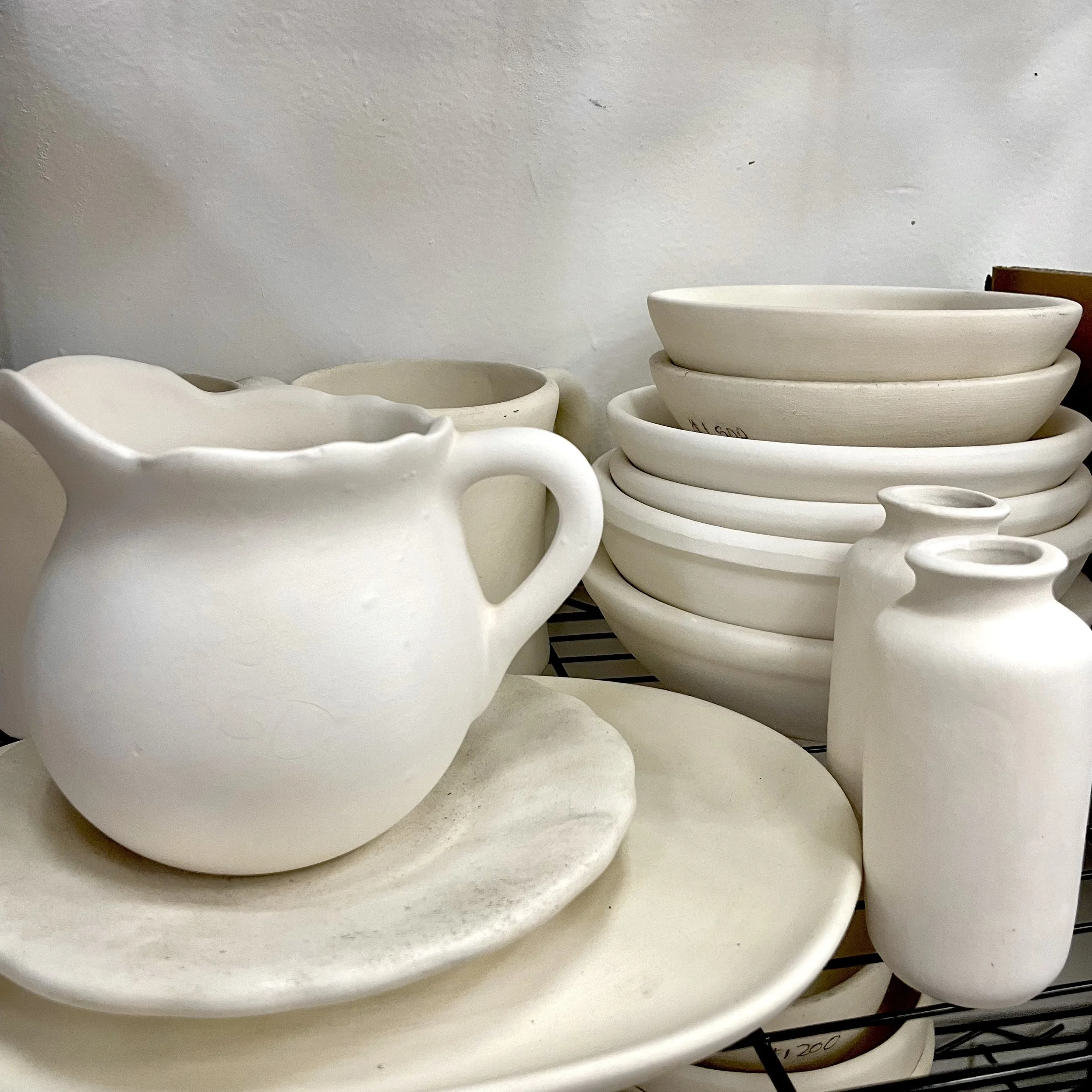 Get ready to dive into the creative process! We’ve got everything you need to bring your artistic vision to life— a vibrant palette of underglazes, painting supplies, stencils, and underglaze transfers are all included. Plus, you’ll have a wide variety of bisqueware to choose from, whether you’re crafting a functional plate or a decorative figurine. Cost includes all glazes, tools, and firings. Bisqueware pieces are priced additionally.